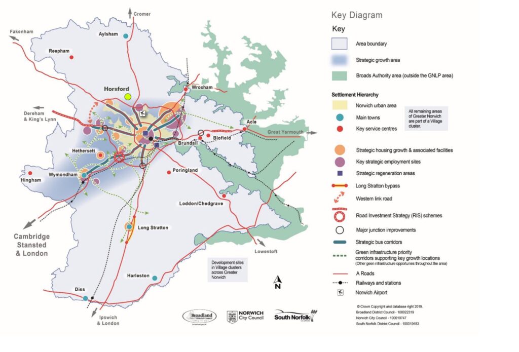 The Neighbourhood Plan must be in general conformity with the strategic policies of the ‘development plan’. The ‘development plan’ comprises the adopted Greater Norwich Local Plan (GNLP), Broadland Development Management Development Plan Document (DPD), and three Norfolk Minerals and Waste DPDs.